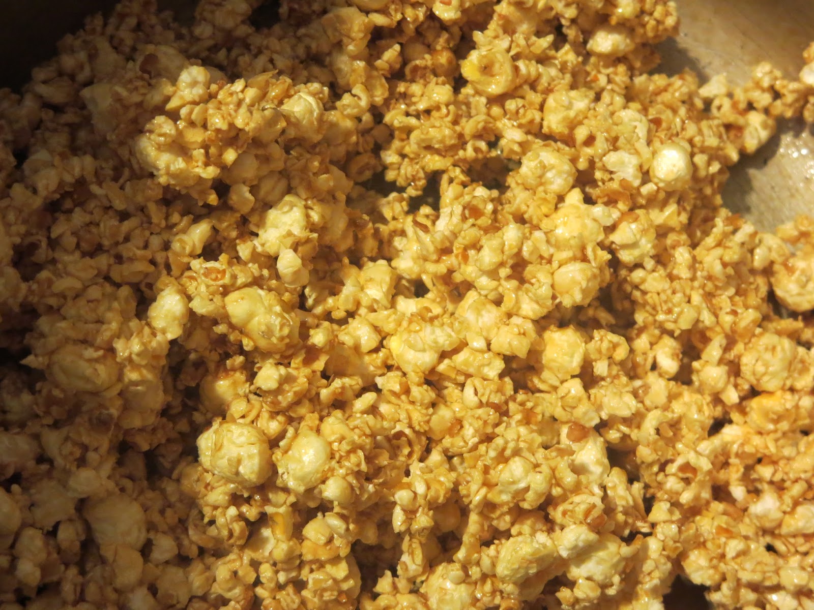 5.Apagar el fuego adicionar las palomitas y revolver hasta integrar bien la miel junto a las palomitas.