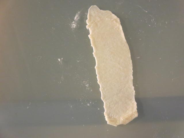 5.Cortar en trozos mas pequeños y esta vez estirar muy delgado.