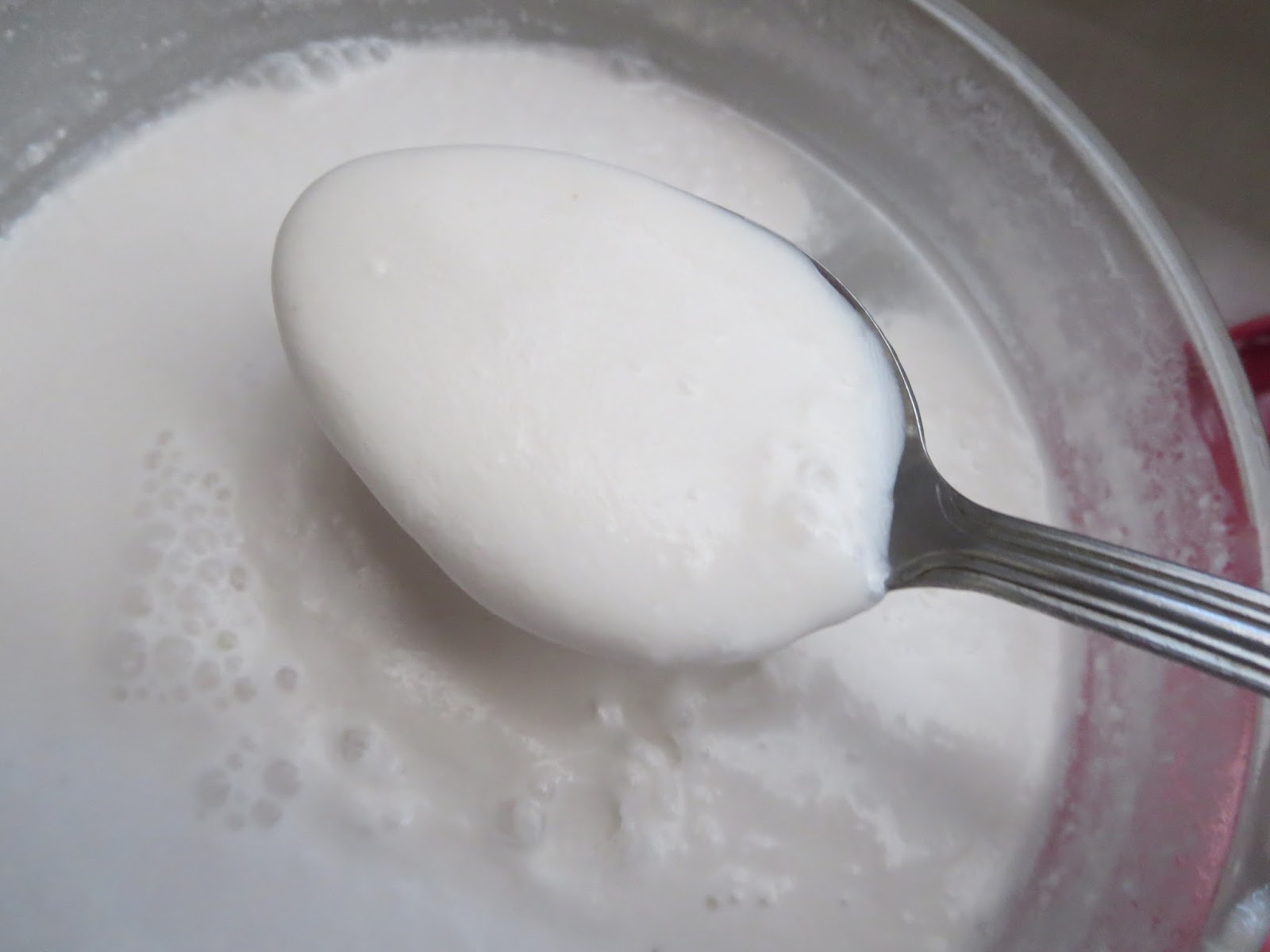 5.Para hacer la crema debes dejar reposar la preparacion en un recipiente por un buen rato hasta que flote la nata y luego con cuidado remover del liquido la parte mas solida.