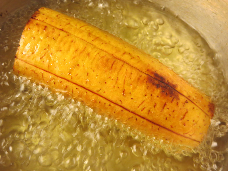 Si fríes de mas o dejas que se reseque la superficie del plátano , este es el aspecto del plátano muy frito.