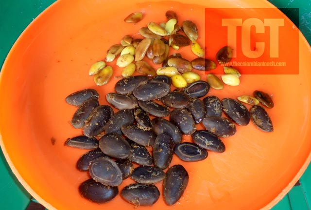 2.cocinar las semillas hasta que se ablanden y se logre sacar la pepa que tiene por dentro que son como una almendra.