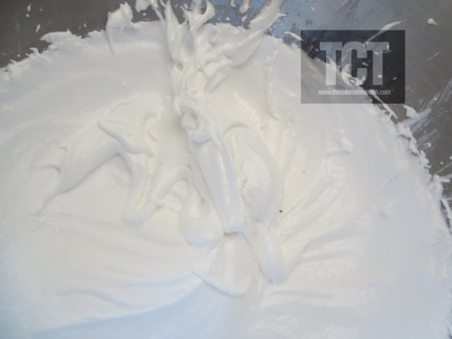5.Hacer un merengue rustico con las claras , empezando a batirlas primeros para incorporarles aire cuando burbujas este un poco homogéneas agregar el azúcar de pocos y continuar batiendo hasta lograr un merengue firme .Por ultimo estirar la masa de 3 milímetros de espesor esparcir el merengue una capa muy delicada no muy gruesa para que no humedezca el hojaldre y te quede blando.