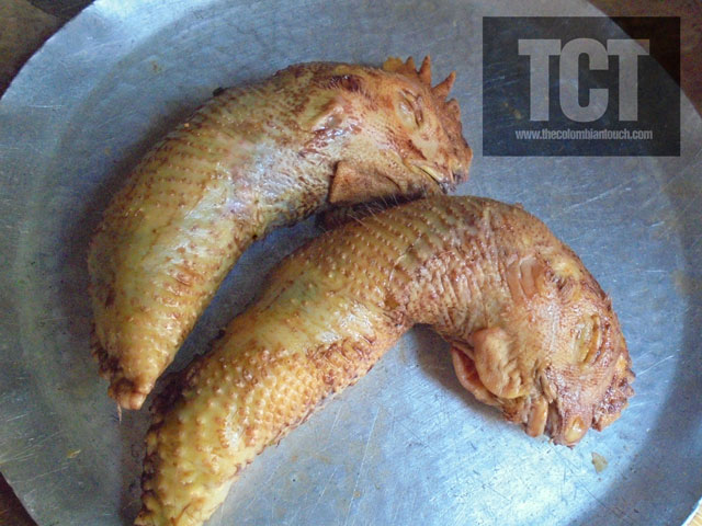 También llamada MORCILLA DE PESCUEZO RELLENO porque su preparación es muy similar a la morcilla tradicional, su única diferencia es que se usa la sangre de la gallina y es embutido en la piel del pescuezo.