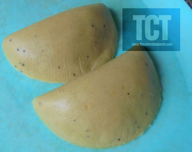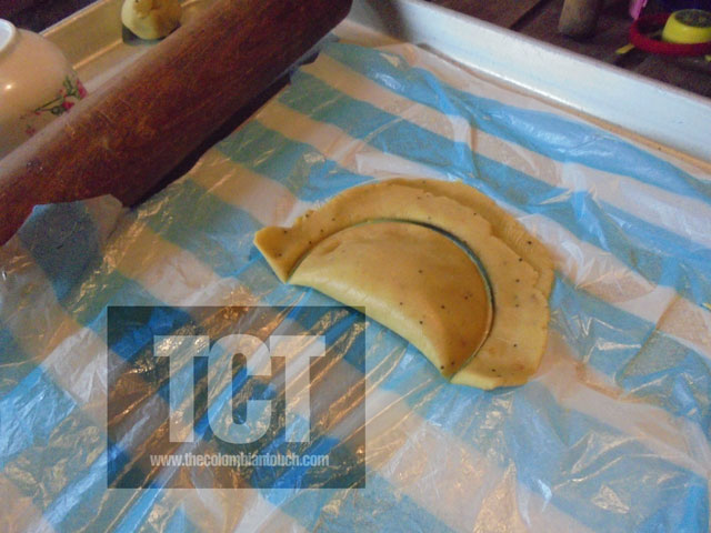 7. ponerle relleno aun lado, doblar, hacer la forma con un molde y sellar los bordes para que no se abran al freírlas.
