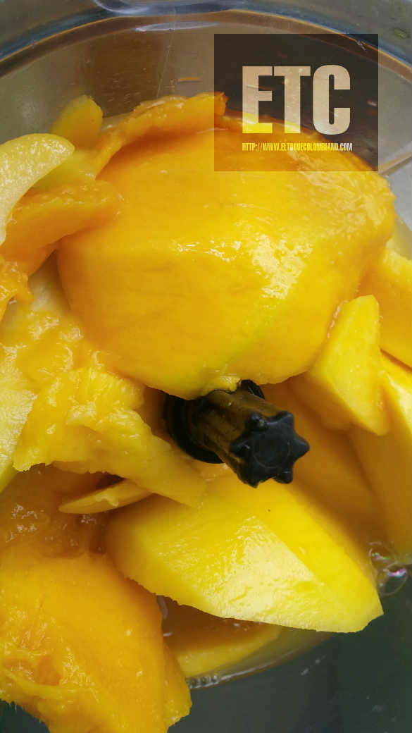 1.Pelar los mangos , ponerlos en la licuadora junto al azucar y el jugo de naranja.
