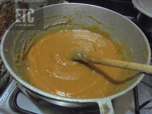 3..Llevar al fuego agregando el azúcar y dejar cocinar hasta que coja punto o se despegue de los lados del caldero.