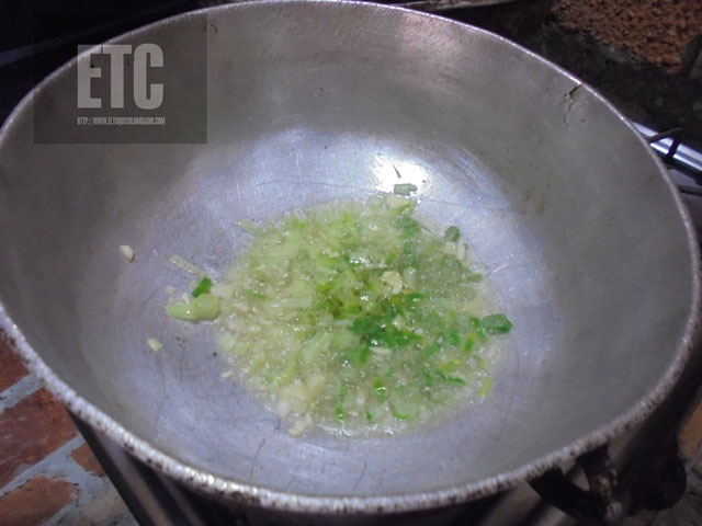 2..En un caldero sofreímos la cebolla, con el ajo y aceite.