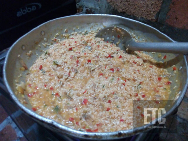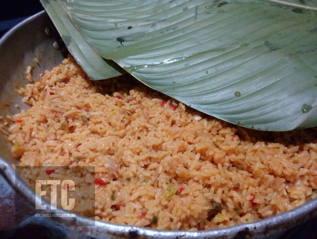 Este arroz es tradicional consumirlo en las calles, servido en hojas de bijao, acompañado de huevo cocido, ensalada de payaso, bollo de yuca, salsa de tomate o suero y limonada de panela.