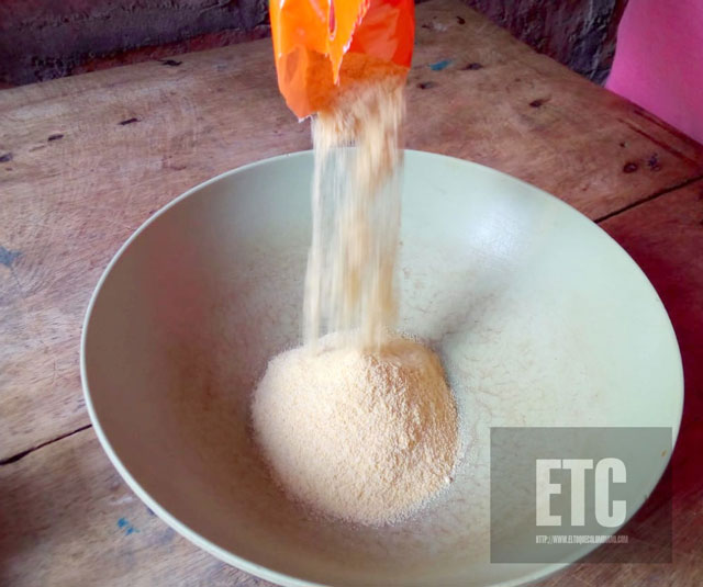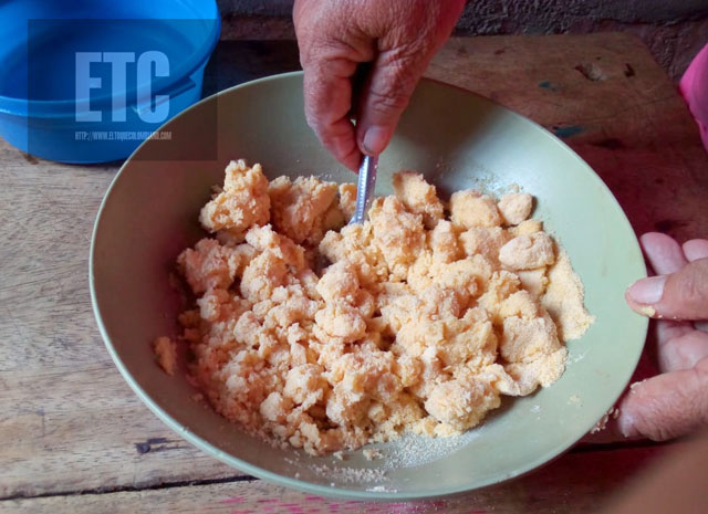 1.Mezclar la harina amarilla con sal al gusto y un poco de agua.