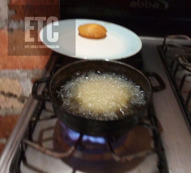 4..Freir un poco hasta que sople la arepa y sacamos del aceite.