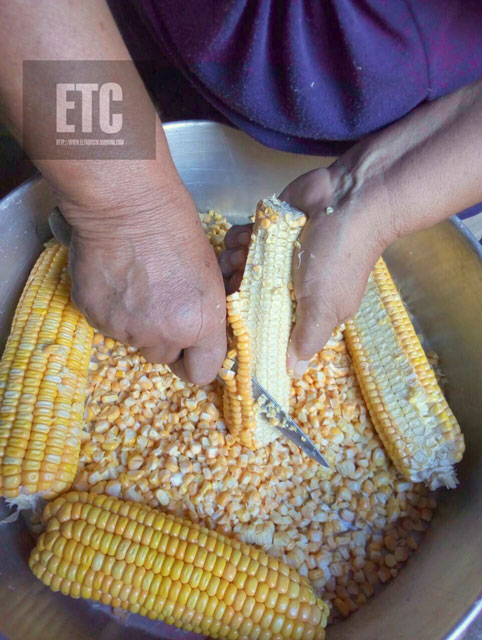 1.Con un cuchillo filoso cortar el grano de las mazorcas.