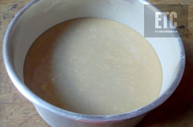 Amasijo de harina de arroz mezclado con queso, aceite o mantequilla, azúcar, leche, huevos y llevado al horno.