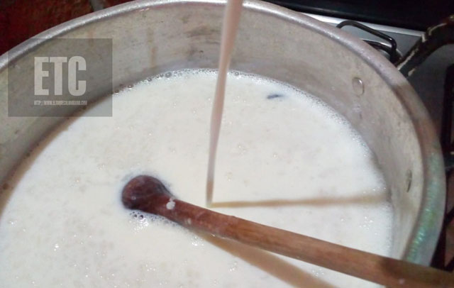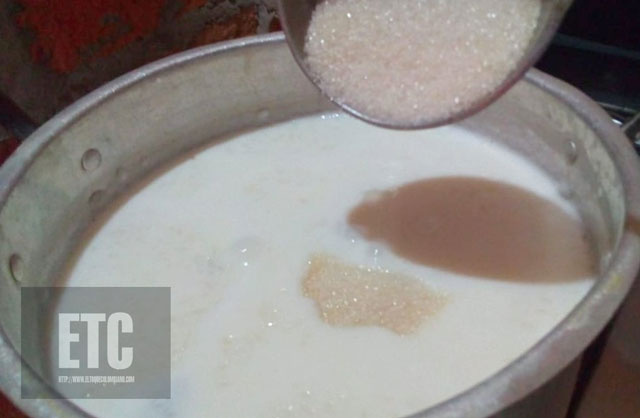 4..Luego agregar el azúcar o la panela, la vainilla, mezclar, hervir por otros 10 minutos y bajar del fuego.