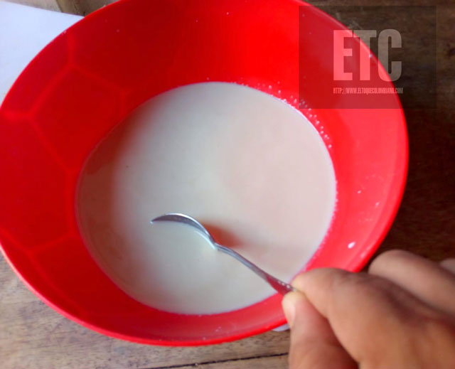 1.Raspar la panela, ponerla en la leche, mezclar bien y reservar.