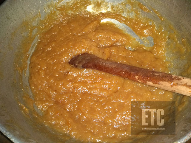 5.. Cocinar por tres horas sin dejar de revolver hasta que tome punto.