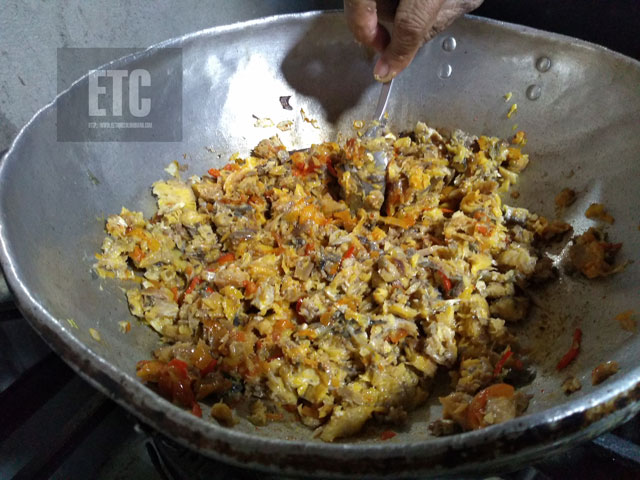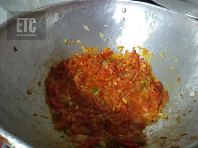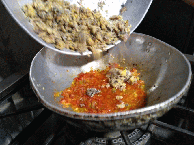 5.. Incorporar el pescado al sofrito y mezclar todo muy bien.
