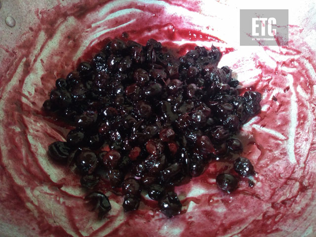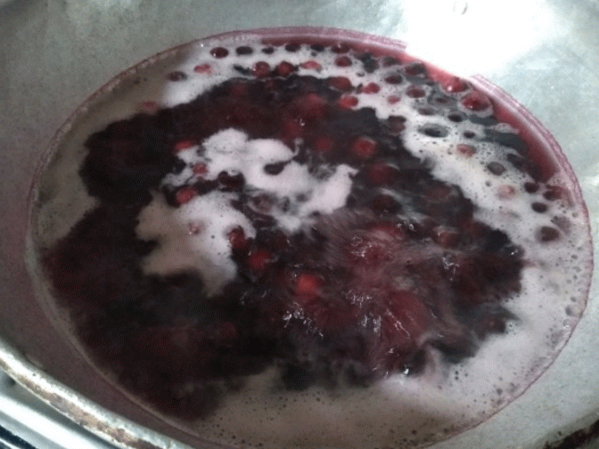 3..Después de cocido sacar el liquido machacar las pepas con un mortero (este paso lo puede hacer antes de cocinar). Agregar de nuevo el agua.