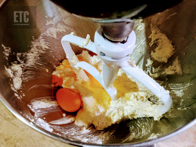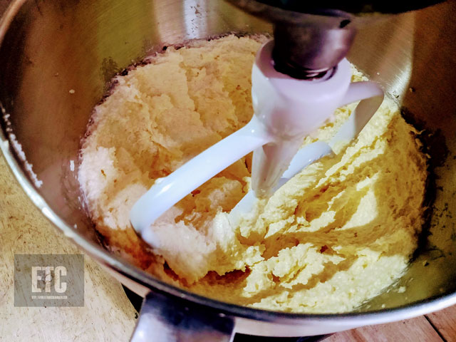 3..Batir la margarina con el azúcar, agregar los huevos uno a uno, la vainilla, el polvo de hornear