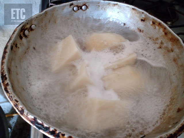 1.Pelar, lavar y cocinar el ñame hasta que este blando.
