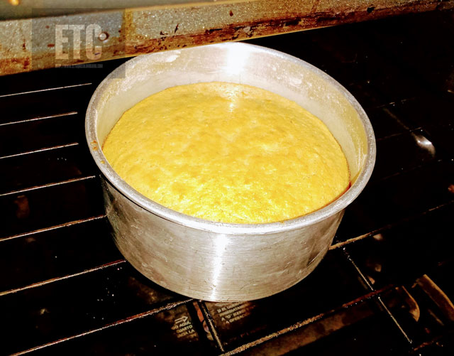 5..Poner la mezcla de la torta en un molde engrasado y enharinado. Llevar al horno precalentado a 180 grados por 40 minutos o hasta que al introducir un palillo salga limpio.