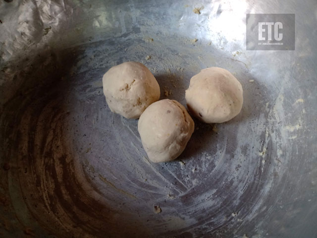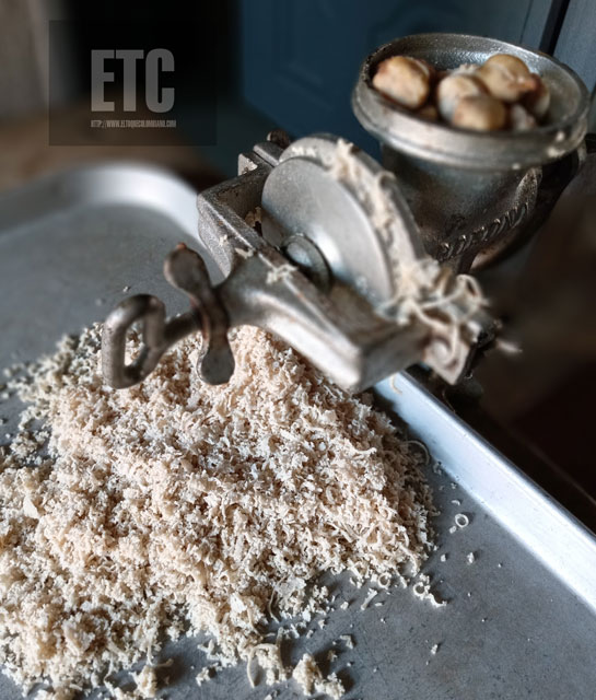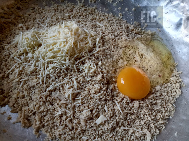 2..Moler el árbol del pan, agregar el queso rallado, el huevo y amasar.
