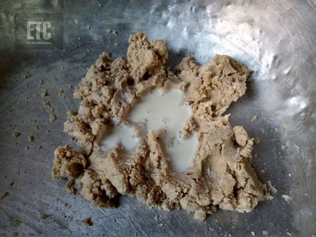 3..Agregar un poco de leche, azúcar, sal y amasar hasta que sienta suave.