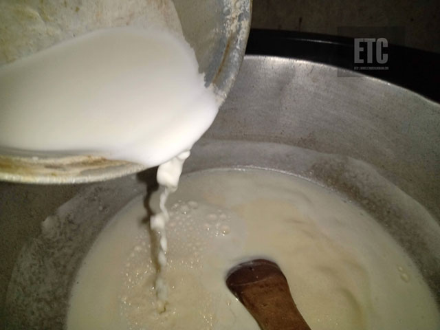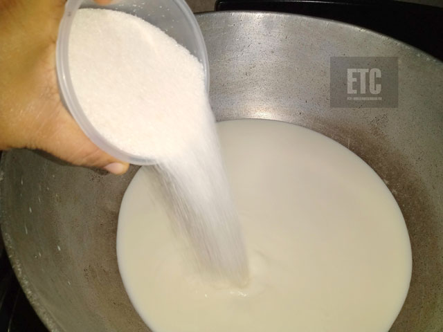 3..Agregar a la leche el azúcar y la mezcla de arroz licuado.