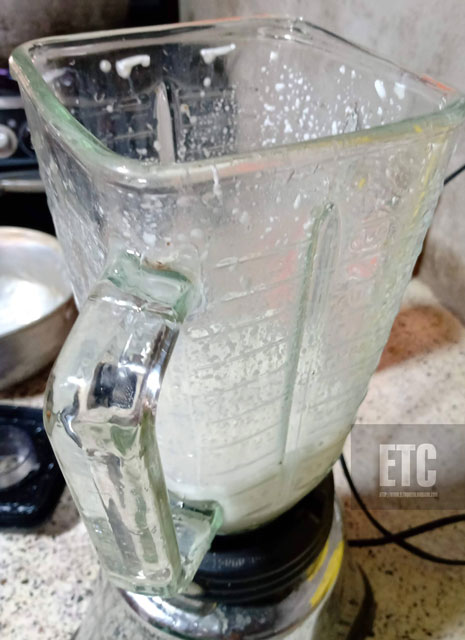 2..Remojar el arroz en un poco de agua por 2 horas, escurrir, luego licuar muy bien con un poco de leche y colar.