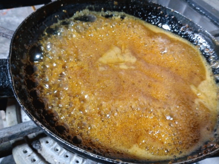 3..Aparte hacemos el melado con la panela, el anís en grano, un poco de agua y lo dejamos cocinar hasta que se torne espeso sin dejar quemar porque se pondrá amargo.