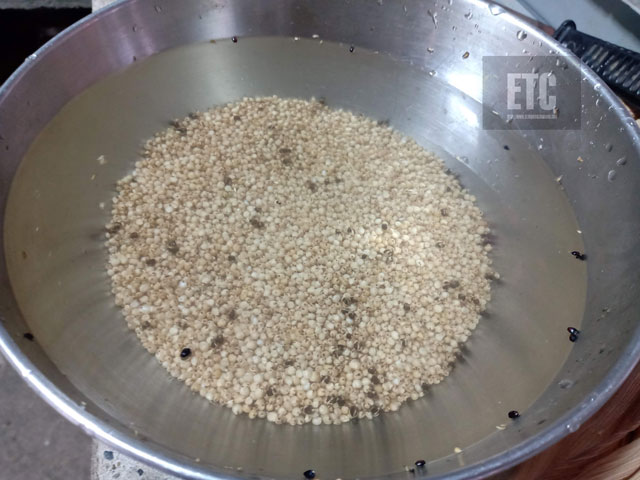 1.Tomamos el millo le agregamos agua, lo lavamos, le quitamos todas las impurezas y lo dejamos remojando con agua limpia por 30 minutos a 1 hora