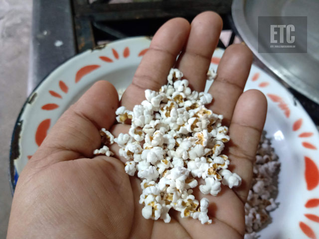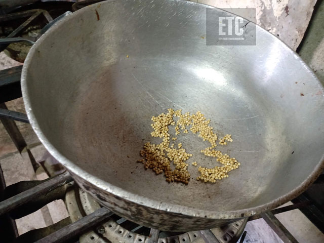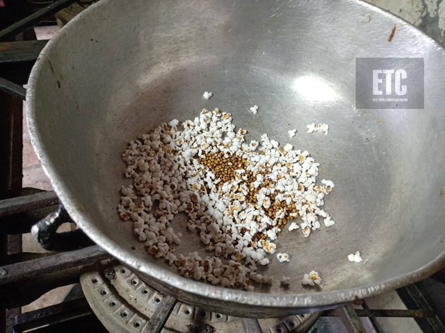 2..Después de escurrido el millo lo ponemos de a poquito a tostar en un caldero hasta que abra todo.