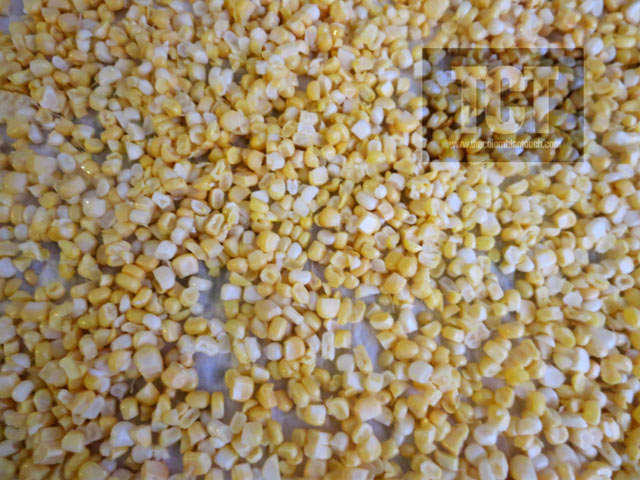 2.Con un cuchillo filoso cortar los granos de la mazorca ,luego moler con el molino bien apretado