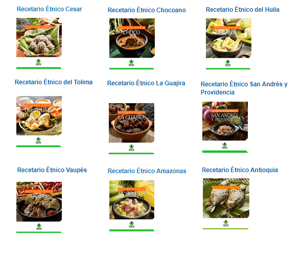 Una coleccion de recetarios realizado por el Instituto Colombiano de Bienestar Familiar una investigacion enfocada en caracter autóctono teneindo en cuenta las tradiciones de los indigenas y las comunidades afro.
