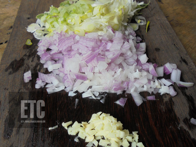 3.Hacer un sofrito con las cebollas, el ajo y un poco de aceite.