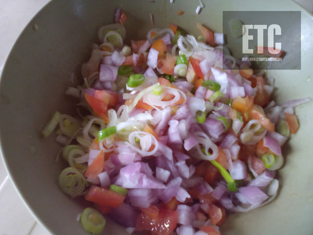 2..Picar el tomate y las cebollas para luego hacer un sofrito con un poco de aceite.