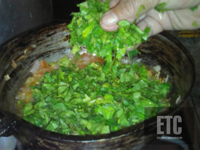 4..agregar las guacas picadas al guiso ya reservado y revolver muy bien.
