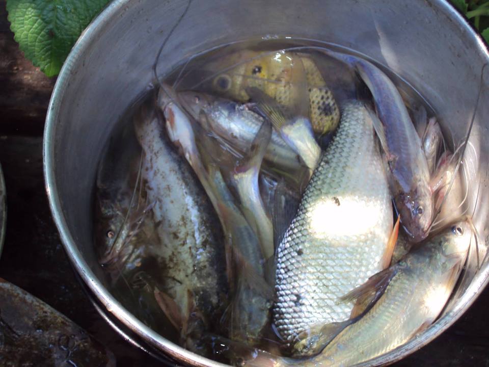 Para pescar se usaba el chinchorro , la atarraya ademas de la raisita una especie de coladera fabricada con madera tejida en naylon.Si se pescaba con chinchorro debían ser 4 personas mínimo uno botando el chinchorro otro bogando la canoa y los otros sostenían los extremos del chinchorro.Cuando se se encerraban los pescados llamaban a esto, “encenar los pescados”.