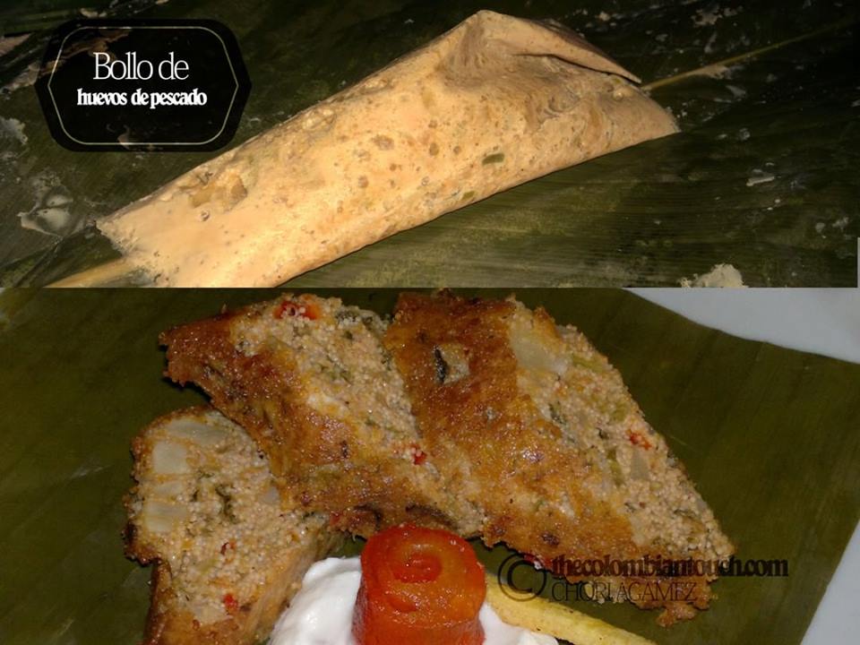 Se cree comúnmente en las cocinas tradicionales del río magdalena que para esta preparación se usan exclusivamente huevos de bocachico (Prochilodus magdalenae) pez endémico de Colombia, en las cuencas de los ríos Magdalena y Cauca, Sinú, Atrato y río Ranchería en la Guajira amenazado por ser de alto consumo entre los pobladores y de delicada reproducción .Su reproducción empeza a comienzos de marzo a abril por la temporada de lluvias los bocachicos se refugian a las ciénagas.Una sola hembra de bocachico puede poner un promedio de 80.000 hasta 1.000.000 de huevos (Dahl, 1971).A Pesar de ser capturados en la época de desove no es la preparación de el bollo de huevos de pescado la principal causa de disminución del bocachico puesto no se usan solo huevos de este pez , sino también huevos de vizcaína y del pez llamado pincho , pez prolifero de facil reproduccion con varios desoves durante el año.Además los bocachicos no son capturados en época de desove por sus huevos sino por la demanda de su carne lo que a facilitado las malas prácticas de pesca como el uso de explosivos en la ciénagas además de no respetar las vedas.