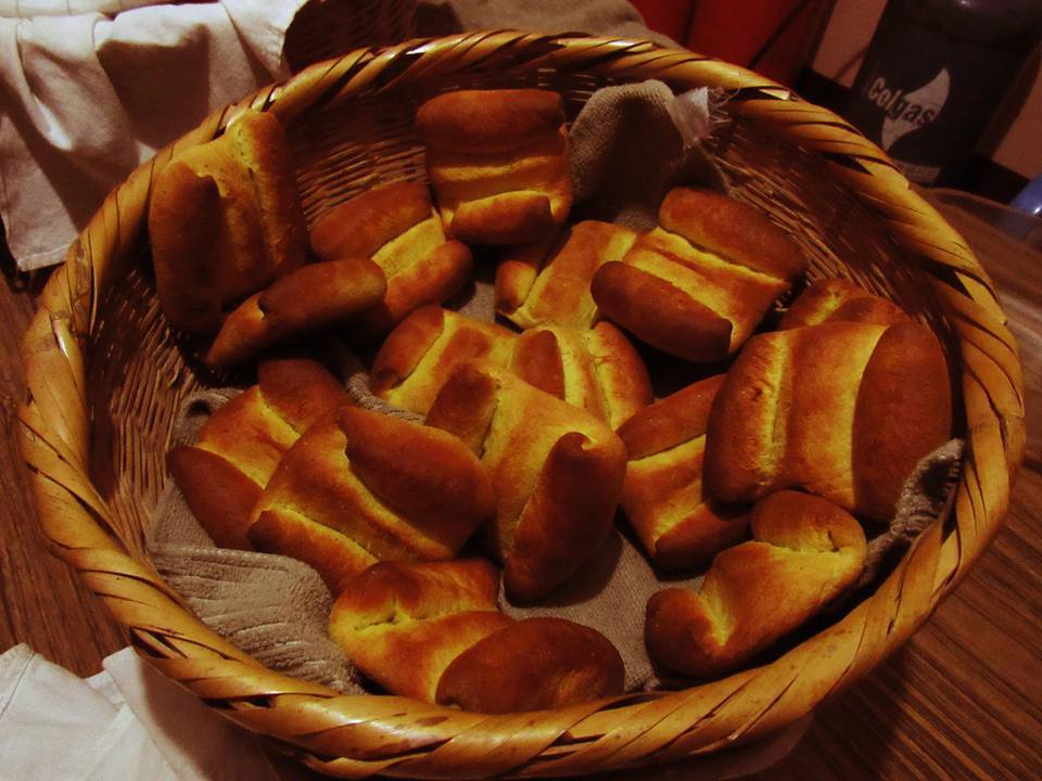Lo primero que se mojaba era las mogollas y enseguida el pan, y ya mojado y amasado se dejaba encima de las artesas, tapado con un paño para que creciera. Mientras tanto se mojaban las almojábanas, galletas, boronas y se empezaba a cremar el azúcar y la mantequilla para la mantecada. Cuando la masa de pan y mogollas había crecido, se pedaceaba y se pesaban los pedazos en el peso de fique que se equilibraba con pastillas de chocolate y con piedras de río. Después de pesado se amoldaba, se le daba la forma que se quería y se ponía en los balayes a crecer.